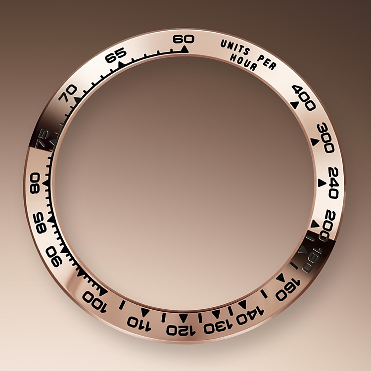 With its tachymetric scale, its three counters and its pushers, the Cosmograph Daytona was designed to be the ultimate timing tool for endurance racing drivers. The bezel features a tachymetric scale to read average speed over a given distance based on elapsed time. This scale offers optimal legibility, making the Cosmograph Daytona the ideal instrument for measuring speeds up to 400 units per hour, expressed in kilometres or miles.
