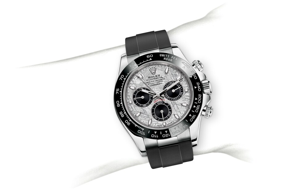 Meteorite comes from the heart of an asteroid or possibly even a planet that has exploded, propelling material across the Solar System until chance brings it into our planet’s orbit and gravity pulls it to Earth. During its journey, the centre of the meteorite is gradually transformed, producing highly unusual metallic patterns, resulting from the very slow cooling of molten asteroid cores. The designers at Rolex create from these configurations a unique treasure for some of the most prestigious models, including this Cosmograph Daytona.