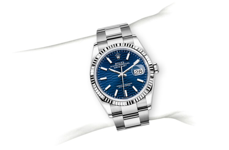 The Rolex fluted bezel is a mark of distinction. Originally, the fluting of the Oyster bezel had a functional purpose: it served to screw the bezel onto the case helping to ensure the waterproofness of the watch. It was therefore identical to the fluting on the case back, which was also screwed onto the case for waterproofness, using specific Rolex tools. Over time, the fluting became an aesthetic element, a genuine Rolex signature feature. Today the fluted bezel is a mark of distinction, in gold on this Datejust 36.