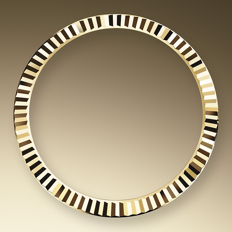 The Rolex fluted bezel is a mark of distinction. Originally, the fluting of the Oyster bezel had a functional purpose: it served to screw the bezel onto the case helping to ensure the waterproofness of the watch. It was therefore identical to the fluting on the case back, which was also screwed onto the case for waterproofness, using specific Rolex tools. Over time, the fluting became an aesthetic element, a genuine Rolex signature feature. Today the fluted bezel is a mark of distinction, in gold on this Datejust 41.