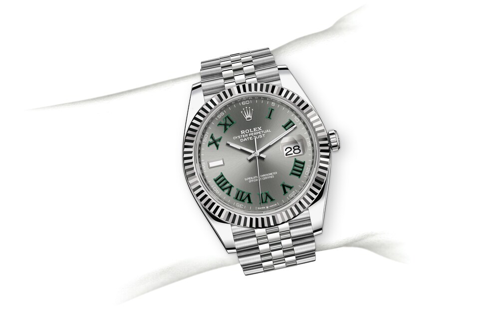 The Rolex fluted bezel is a mark of distinction. Originally, the fluting of the Oyster bezel had a functional purpose: it served to screw the bezel onto the case helping to ensure the waterproofness of the watch. It was therefore identical to the fluting on the case back, which was also screwed onto the case for waterproofness, using specific Rolex tools. Over time, the fluting became an aesthetic element, a genuine Rolex signature feature. Today the fluted bezel is a mark of distinction, in gold on this Datejust 41.