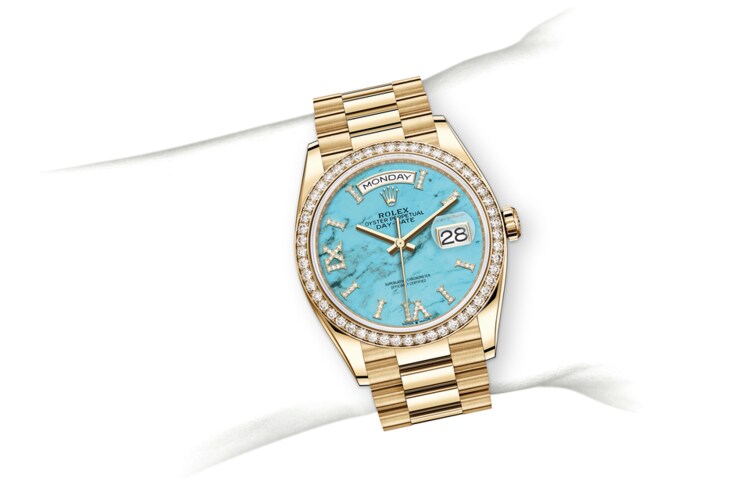 Gem-setters, like sculptors, finely carve the precious metal to hand-shape the seat in which each gemstone will be perfectly lodged. With the art and craft of a jeweller, the stone is placed and meticulously aligned with the others, then firmly secured in its gold or platinum setting. Besides the intrinsic quality of the stones, several other criteria contribute to the beauty of Rolex gem-setting: the precise alignment of the height of the gems, their orientation and position, the regularity, strength and proportions of the setting as well as the intricate finishing of the metalwork. A sparkling symphony to enhance the watch and enchant the wearer.