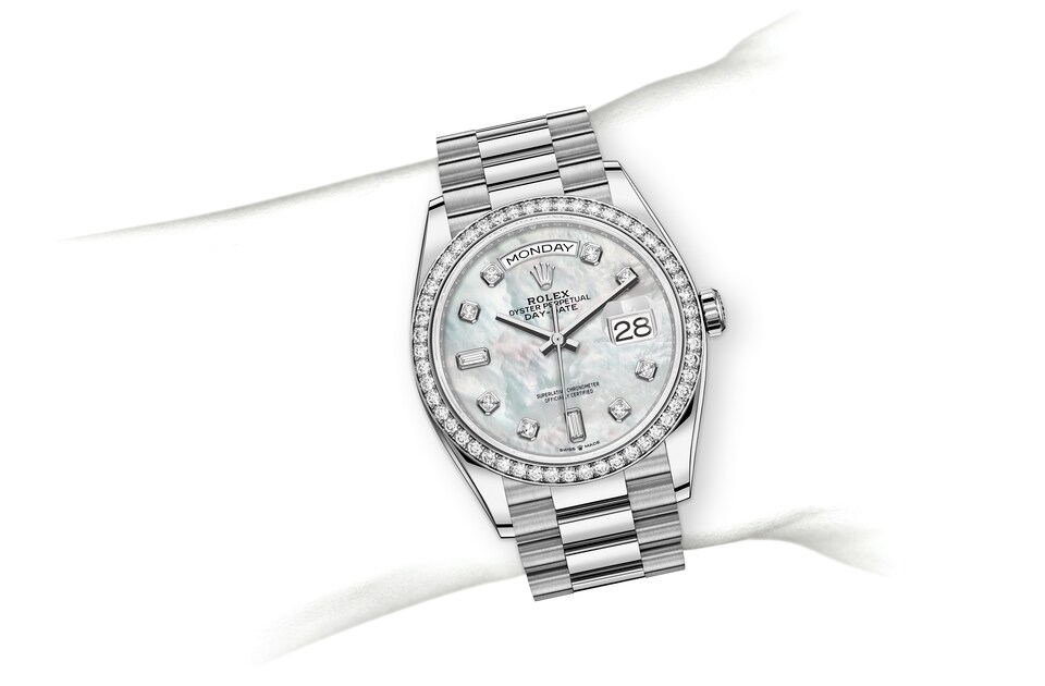 Mother-of-pearl is by its nature full of mystery and surprises. Depending on its origin, it can be pink, white, black or yellow. It differs in colour, intensity and structure according to the part of the shell from which it is extracted. At Rolex, mother-of-pearl is never artificially coloured. Instead, particular know-how and skill are devoted to simply highlighting its natural beauty and preserving the original hues. As all mother-of-pearl dials are unique pieces, an identical dial will never be found on another wrist.