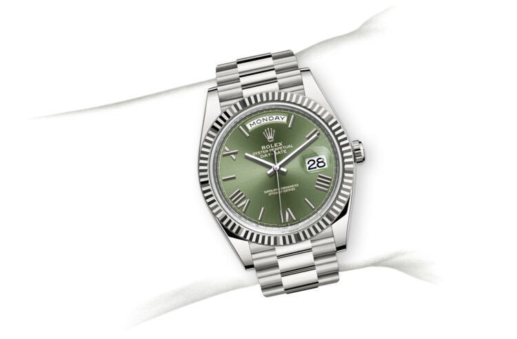 The Rolex fluted bezel is a mark of distinction. Originally, the fluting of the Oyster bezel had a functional purpose: it served to screw the bezel onto the case helping to ensure the waterproofness of the watch. It was therefore identical to the fluting on the case back, which was also screwed onto the case for waterproofness, using specific Rolex tools. Over time, the fluting became an aesthetic element, a genuine Rolex signature feature. Today the fluted bezel is a mark of distinction, in gold on this Day-Date 40.