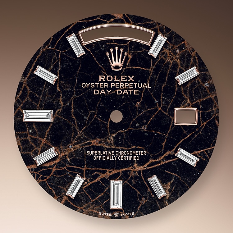 The dial is the distinctive face of a Rolex watch, the feature most responsible for its identity and readability. Characterised by hour markers fashioned from gold to prevent tarnishing, every Rolex dial is designed and manufactured in-house, largely by hand to ensure perfection.