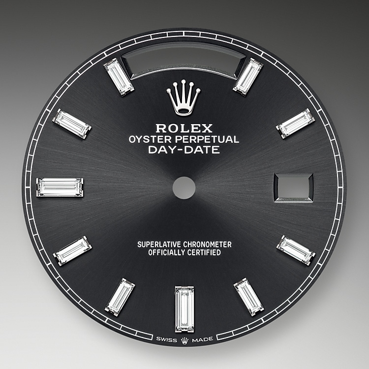 The dial is the distinctive face of a Rolex watch, the feature most responsible for its identity and readability. Characterised by hour markers fashioned from gold to prevent tarnishing, every Rolex dial is designed and manufactured in-house, largely by hand to ensure perfection.