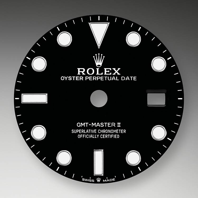 Like all Rolex Professional watches, the GMT-Master II offers exceptional legibility in all circumstances, and especially in the dark, thanks to its Chromalight display. The broad hands and hour markers in simple shapes – triangles, circles, rectangles – are filled with a luminescent material emitting a long-lasting glow.