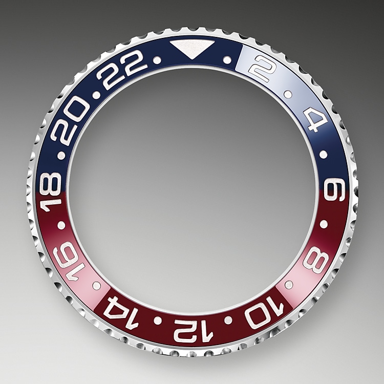 In addition to conventional hour, minute and seconds hands, the GMT-Master II features an arrow-tipped hand, which circles the dial once every 24 hours, as well as a bidirectional rotatable 24-hour graduated bezel. The distinctively coloured 24-hour hand displays the “home” reference time in a first time zone which can be read on the graduations on the bezel. The traveller’s local time is easily set by “jumping” from hour to hour, thanks to an ingenious mechanism operated via the winding crown: the hour hand can be adjusted forwards or backwards independently of the minute and seconds hands. This allows travellers to adapt to their new time zone without affecting the precision of their timekeeping.