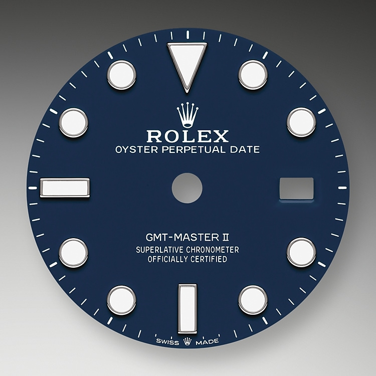 Like all Rolex Professional watches, the GMT-Master II offers exceptional legibility in all circumstances, and especially in the dark, thanks to its Chromalight display. The broad hands and hour markers in simple shapes – triangles, circles, rectangles – are filled with a luminescent material emitting a long-lasting glow.