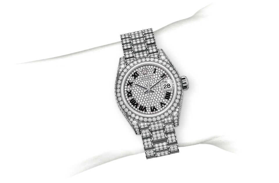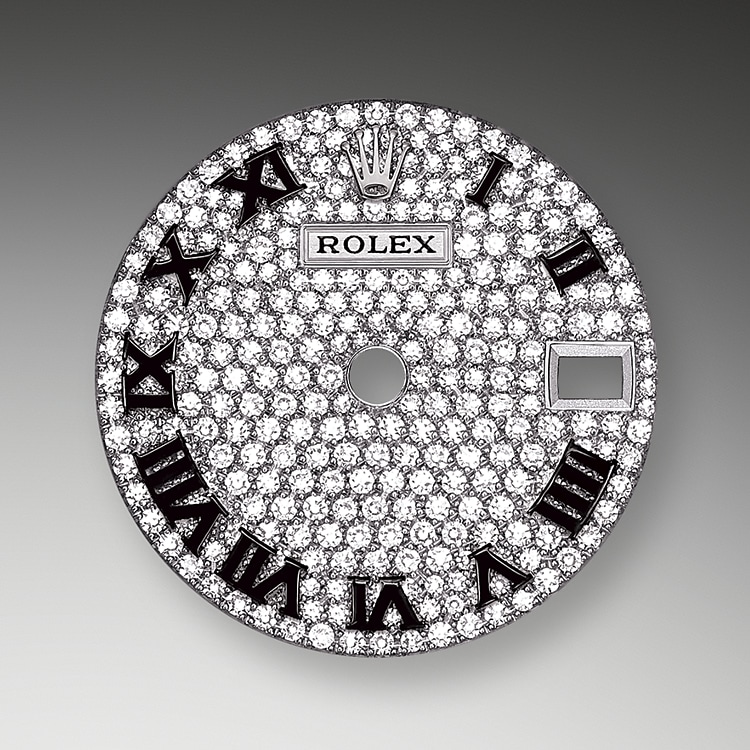 The diamond-paved dials are a sparkling symphony to enhance the watch and enchant the wearer. Gem-setters finely carve the precious metal to hand-shape the seat in which each gemstone will be perfectly lodged. Besides the intrinsic quality of the stones, several other criteria contribute to the beauty of Rolex gem-setting: the precise alignment of the height of the gems, their orientation and position, the regularity, strength and proportions of the setting as well as the intricate finishing of the metalwork.