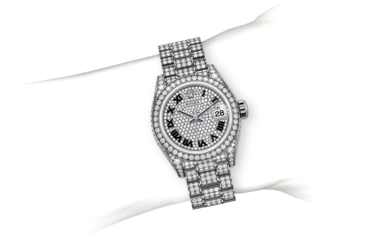 Gem-setters, like sculptors, finely carve the precious metal to hand-shape the seat in which each gemstone will be perfectly lodged. With the art and craft of a jeweller, the stone is placed and meticulously aligned with the others, then firmly secured in its gold or platinum setting. Besides the intrinsic quality of the stones, several other criteria contribute to the beauty of Rolex gem-setting: the precise alignment of the height of the gems, their orientation and position, the regularity, strength and proportions of the setting as well as the intricate finishing of the metalwork. A sparkling symphony to enhance the watch and enchant the wearer.