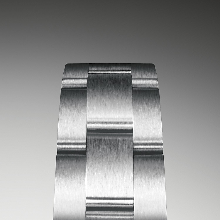 The Oyster bracelet is a perfect alchemy of form and function, aesthetics and technology. First introduced in the late 1930s, this particularly robust and comfortable metal bracelet with its broad, flat three-piece links remains the most universal bracelet in the Oyster collection. For the Oyster Perpetual models the Oyster bracelet is fitted with an Oysterclasp.