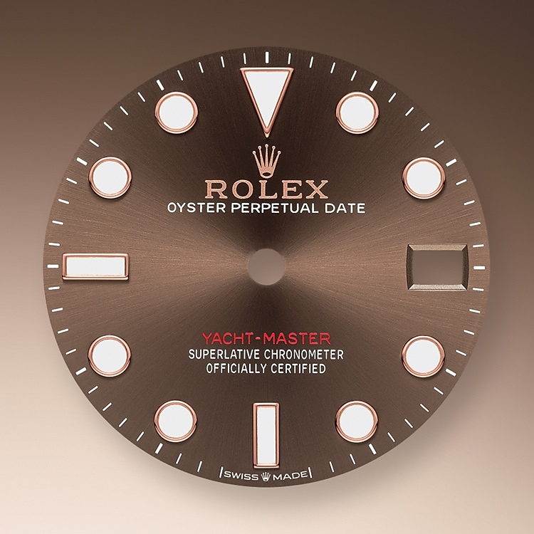 The Yacht-Master’s bidirectional rotatable 60-minute graduated bezel is made of precious materials. The raised polished numerals and graduations stand out clearly against a matt, sand-blasted background. This functional bezel – which allows the wearer to calculate, for example, the sailing time between two buoys – is also a key component in the model’s distinctive visual identity.