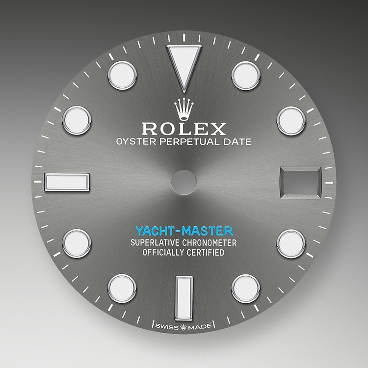 Many Rolex watches are available with the now-legendary combination of yellow, white or Everose gold and steel known as Rolesor, but Rolesium is a creation specific to the Yacht-Master. While the case and bracelet are in rugged Oystersteel, the bezel of the Rolesium versions is made of platinum, imparting a silvery whiteness and vibrant luminosity for an unmistakable sense of luxury.