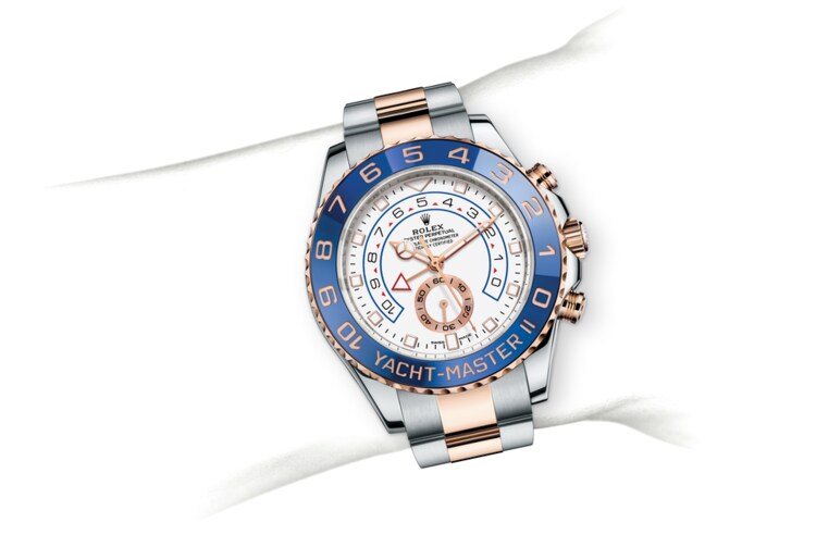 The Yacht-Master II is equipped with a new dial, and new hands that are characteristic of Rolex Professional models, enhancing legibility and sharpening its aesthetic appeal. The dial now features a triangular hour marker at 12 o’clock and a rectangular hour marker at 6 o’clock for more intuitive reading of the watch. A luminescent disc on the hour hand clearly distinguishes it from the minute hand. The Yacht-Master II’s countdown can be programmed for a duration of between 1 and 10 minutes. The programming is memorized by the mechanism so that at a reset it returns to the previous setting. Once launched, the countdown can be synchronized on the fly to match the official race countdown.